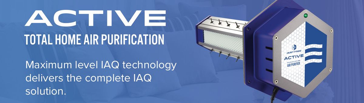 The Dust Free® Active Air Purifier’s unique technologies target air quality problems at the source, such as dust, dander, germs, volatile organic compounds, allergens, odors and more. Installed into the supply plenum of your HVAC system, the Dust Free® Active in-duct air purifier’s environmentally-friendly oxidizers and ionization system safely and effectively purifies the air in your home.