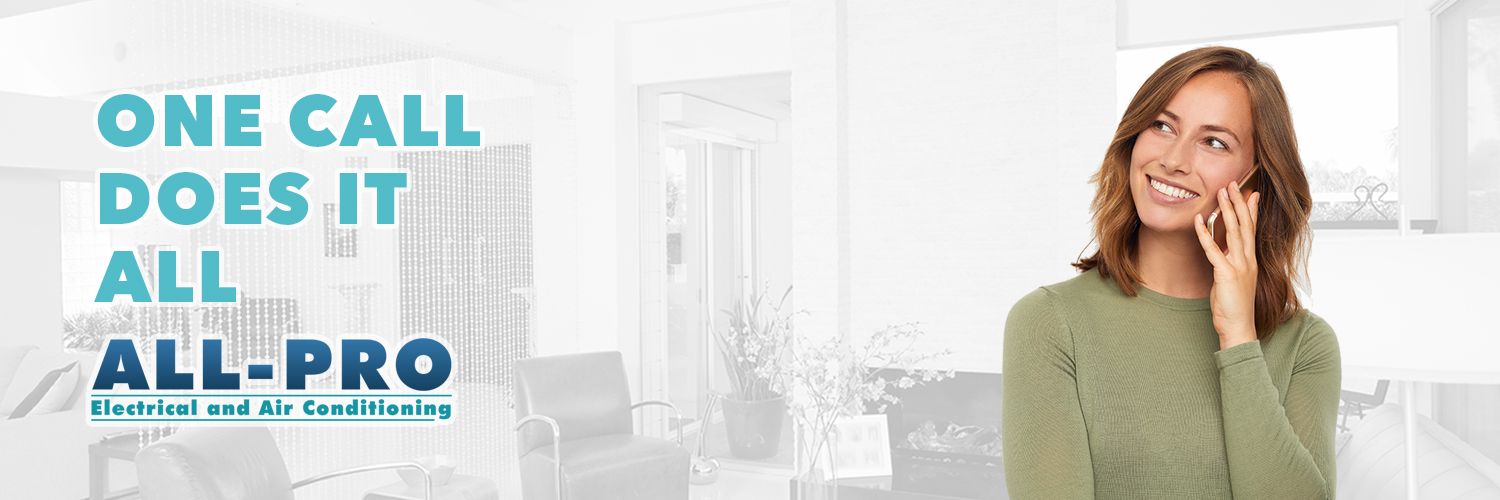 At All-Pro Electrical and Air Conditioning, our technicians are cross-trained in electrical and HVAC so, in addition to all the services you expect from a traditional HVAC contract, our technicians can repair or install ceiling and attic fans, smoke and carbon monoxide detectors, indoor and outdoor lighting, circuit breakers, GFCI outlets, and much, much more – they can even install flat-screen TVs.